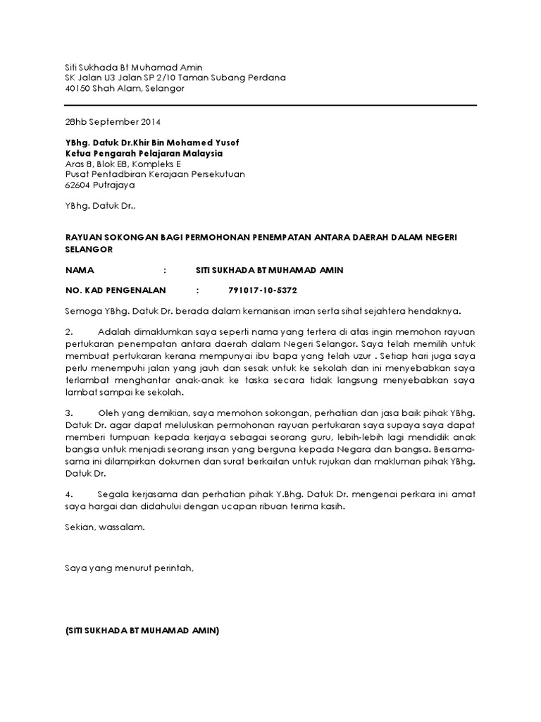Surat Rayuan Pertukaran Sekolah Pdf